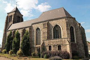 Die dem Heiligen Martin gewidmete Kirche wurde von 1532 bis 1580 aus Sandstein aus den nahe gelegenen Steinbrüchen in einem typisch flämischen Baustil errichtet. Sie ist 42 m lang und 11 m breit und verfügt über drei Kirchenschiffe, deren Gewölbe aus Holz, mit einem sehr schönen Schiffsrumpf-Effekt, sind. Der Chor und die Kapellen sind mit einem gemauerten Gewölbe versehen. Unter dem Chor befindet sich eine schöne Krypta. Ihre privilegierte Lage auf einem Hügel, der das „flache Land“ überblickt, führte dazu, dass die Kirche während der deutschen Offensive im April und Mai 1918 ins Visier der Artillerie geriet und in weiten Teilen zerstört wurde. Die gesamte Glasmalerei von 1577 wurde vernichtet. Beim Wiederaufbau 1928 wurden das neue Glasfenster der Vorhalle und von 1933 bis 1938 alle anderen Glasmalereien angefertigt. Die Kirche wurde als historisches Denkmal klassifiziert und 1920 unter Denkmalschutz gestellt. Sie befindet sich im Besitz der Gemeinde.