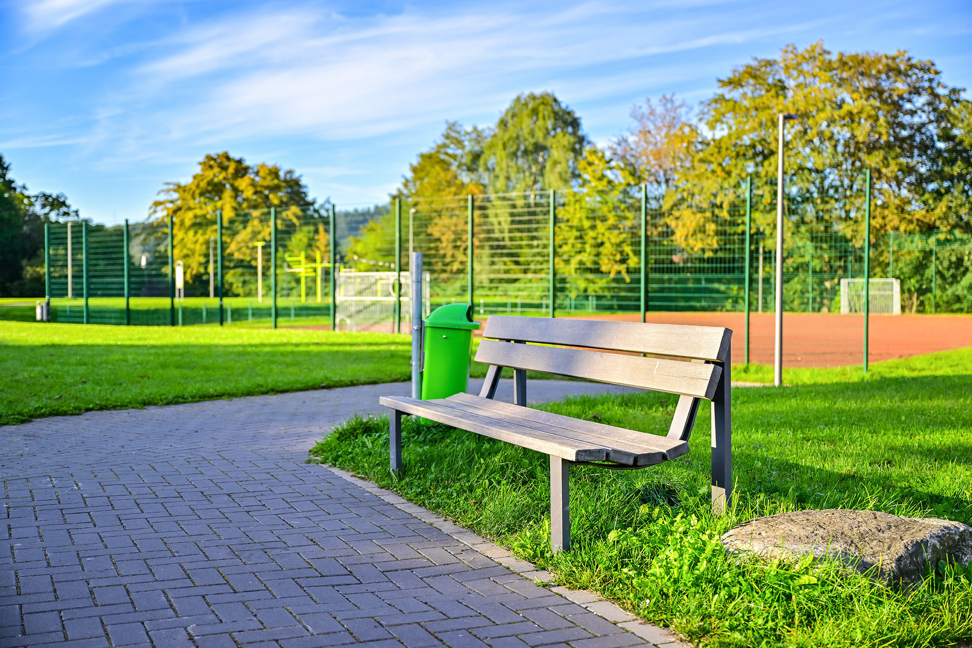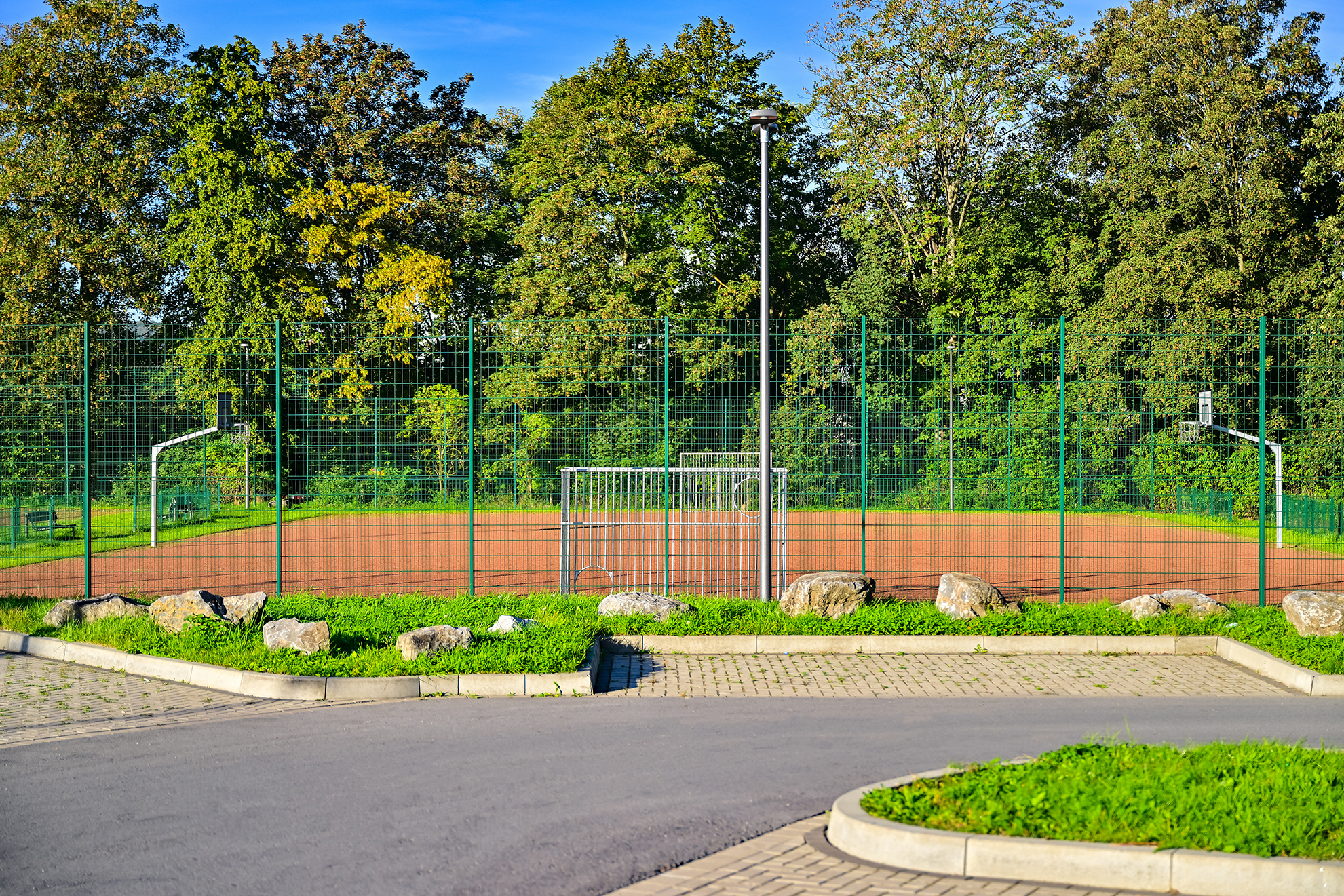 Zwei Bolz-/Basketballplätze, Slackline, Callisthenics-Parcours, Kletterwand