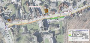 Die rechtliche Situation ist eindeutig: Der Schutzstreifen darf nur im Ausnahmefall befahren werden (z.B. Lkw oder Linienbusse), im Regelfall ist links davon zu fahren; dies gilt auch im Fall des Rückstaus etwa aufgrund von Rotlicht an der Ampel B7/K16. Erst im unmittelbaren Knotenbereich zwischen Gehweg und Mittelinsel besteht jetzt noch eine Zweispurigkeit für die Vorsortierung Linksabbieger bzw. Geradeaus/Rechtsabbieger (s. Anlage).